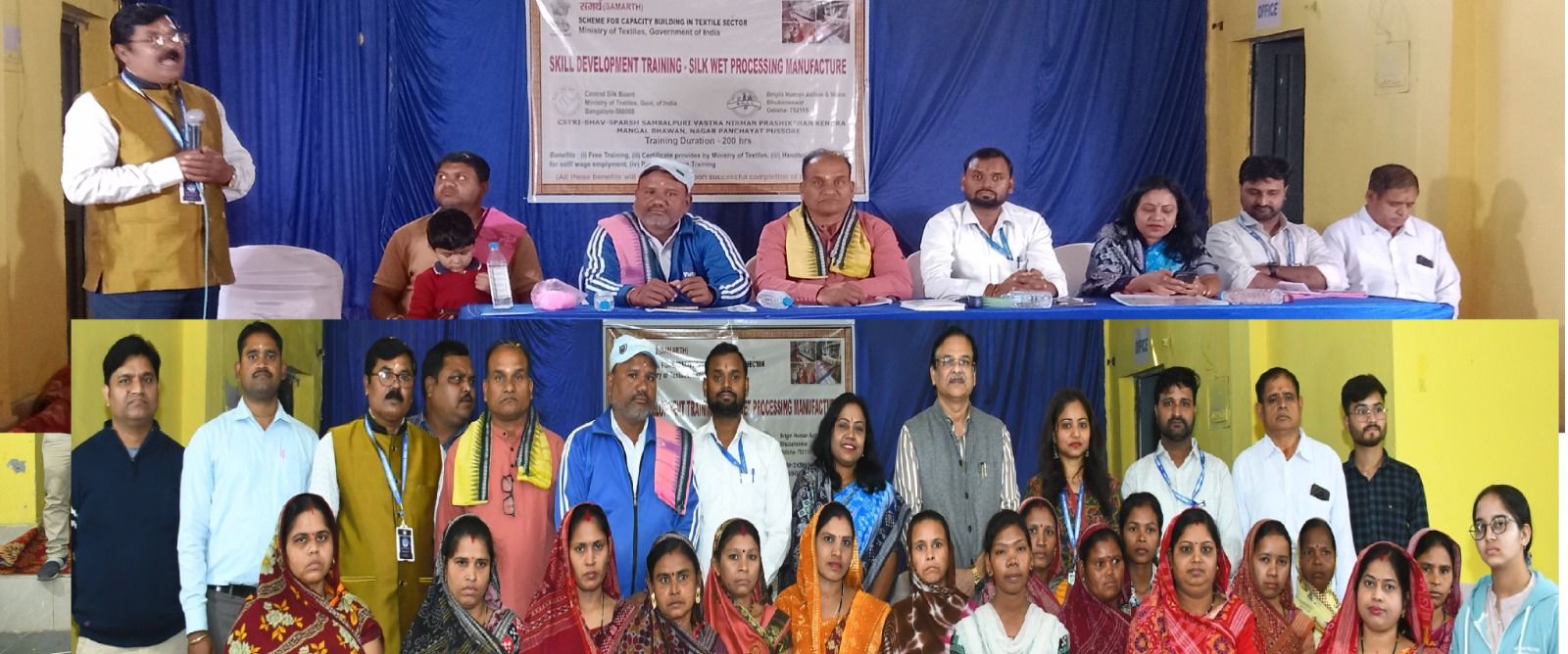 प्रदेष के रायगढ जिला और पुसौर क्षेत्र उडीसा सीमा से लगा हुआ है इसलिये यहां उडीया परिधान भाशा बोली व संस्कृति उडीसा से जुडा हुआ है। उडीसा के संबलपुरी कपडे व उसकी रंगाई समुचे देष में चिन्हित है। इसके विस्तार एवं लोगों को रोजगार दिलाने प्रषिक्षण दिलाई जा रही है ताकि लोग आत्मनिर्भर हो सके। इसी कडी में तहसील मुख्यालय पुसौर स्थित मंगलभवन में केन्दीय सिल्क बोर्ड के समर्थ योजना के अंतर्गत व ब्राईट ह्यूमन एक्षन एवं वाई संस्था भुवनेष्वर द्वारा पुसौर महिला किसान प्रोड्युसर कंपनी के सहयोग से 30 दिवसीय प्रषिक्षण का प्रारंभ हुआ जिसे नगर अध्यक्ष प्रतिनिधि मोहित सतपथी एवं उपाध्यक्ष उमेष साव ने अन्य पार्शद मंगल साव, निराकार पटेल आदि के उपस्थिति में फीता काटकर की। वहीं मुख्य अतिथि के रूप में जनपद अध्यक्ष हेमलता चैहान एवं विषेश अतिथि के रूप् में जिला पंचायत सदस्य ब्रजेष गुप्ता षामिल रहे। कार्यक्रम में केन्द्रीय षिल्क बोर्ड बिलासपुर संभाग से अषोक कुमार जी, उप संचालक रेषम मनीष पवार, अध्यक्ष सौरव कर, मुख्य प्रबंधक ललित मेहर, अधिकारिक प्रबंधक षीला जेना तथा पुसौर महिला किसान प्रोड्युसर कंपनी के सीईओ निलेष कुमार महाणा, मुख्य प्रषिक्षक सरोजनी मेहर एवं सहायक प्रषिक्षक सुरत मेहर षामिल रहे। प्रषिक्षण के संबंध में महिला किसान प्रोड्युसर कंपनी के सीईओ निलेष कुमार महाणा ने बताया कि ये प्रषिक्षण पुर्णतः निषुल्क है बल्कि प्रषिक्षुओं को स्टायफन देने का भी प्रावधान है जो घंटे के आधार पर होंगे। समुचा प्रषिक्षण बायोमेट््िरक है जो समुचे महिने में प्रत्येक प्रषिक्षुओं के 200-200 घंटे के होंगे इस आधार पर प्रत्येक प्रषिक्षुओं को 150-150 रूप्ये के भुगतान भी होंगे। ज्ञात हो कि उक्त प्रषिक्षण कार्यक्रम में 30 प्रषिक्षु प्रषिक्षण प्राप्त करेंगे इनके लिये सारे उपकरण एवं रा मटेरियल मुहैया कराया जा चुका है। कार्यक्रम के बीच सीईओ निलेष महाणा का लोग तारीफ कर रहे थे चूंकि इनके अगुवाई में सारे कार्यक्रम को मुर्तरूप मिला है।