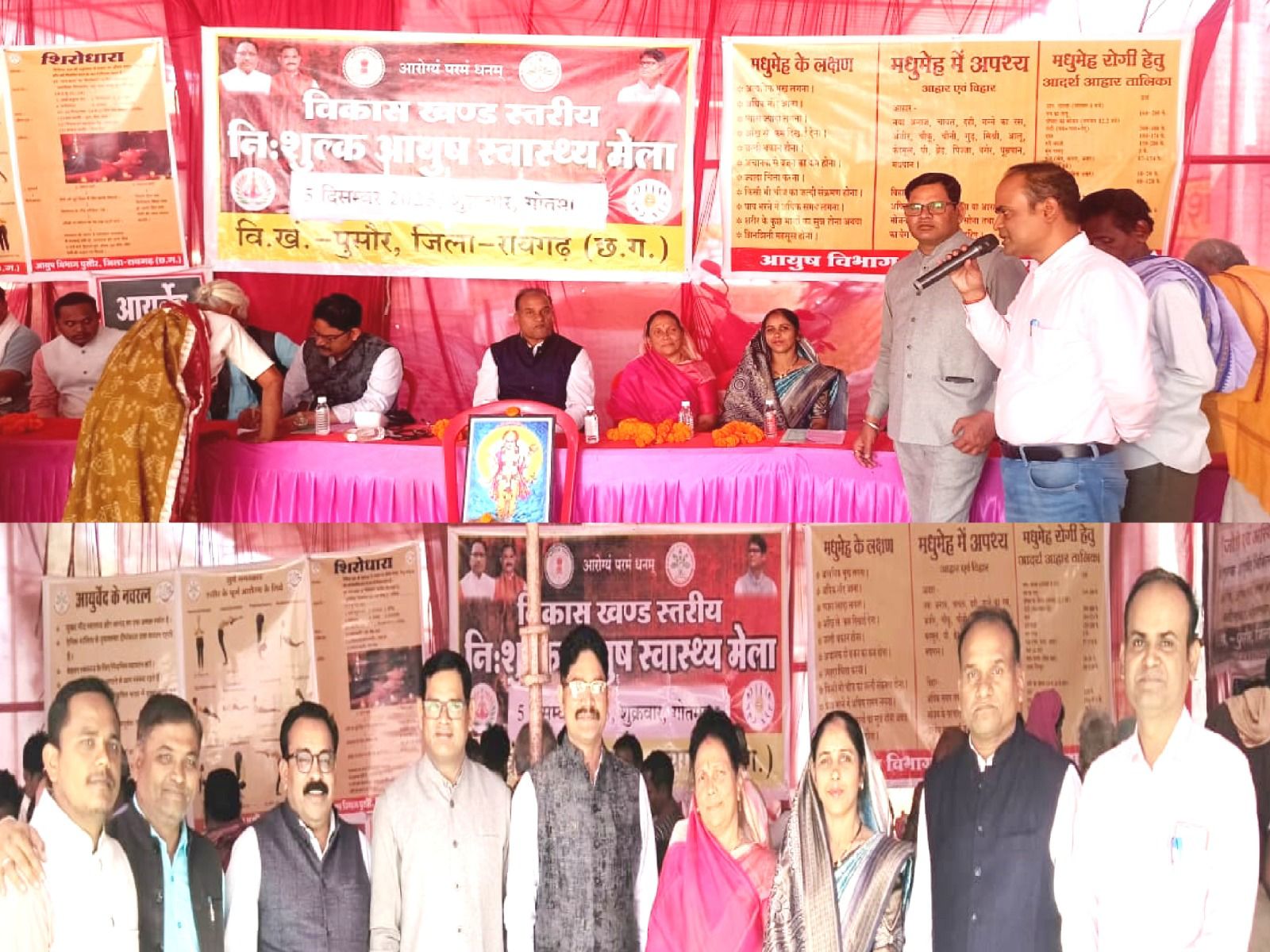 जिला आयुष अधिकारी डॉ गौराहा के मार्गदर्शन एव ंबीएमओ डाॅ. विनोद नायक तथा खंड आयुर्वेद चिकित्सा अधिकारी डाॅ देवाषीश राय चैधरी के अगुवाई के तहत ग्राम गोतमा में विकास खण्ड स्तरीय आयुष स्वास्थ्य मेला का आयोजन किया गया। मेला का शुभ आरंभ नगर पंचायत अध्यक्ष मानि मोहित सतपति सरपंच तनुजा गुप्ता, पुर्व सरपंच अषीश गुप्ता सरधाराम गौटिया अशोक गुप्ता घनश्याम पटेल हेमसागर प्रधान एवं अन्य जन प्रतिनिधियों ने भगवान धनवंतरी के छाया चित्र पर पुष्प गुछ अर्पित कर किये। सभी जन प्रतिनिधियों ने अपने अपने वक्तव्य में आयुर्वेद की महत्ता के बारे मे लोगों को बताये। आयुष विभाग द्वारा आयोजित मेले का उदेश्य यही है कि प्रत्येक व्यक्ति को आयुर्वेद चिकित्सा पद्धति का लाभ मिल सके एवं आम जनता को अधिक से अधिक जागरूक किया जा सके। पुराने बीमारी से निजात दिलाने के लिए पुसौर में सभी प्रकार के पंचकर्म किया जाता है।शिविर में लगभग सभी प्रकार के बीमारी जैसे संधिवात आमवात चर्मरोग कास श्वास उदररोग अनिद्रा उच्चरक्तचाप मधुमेह स्त्रीरोग इत्यादि के रोगी पाये गये। शिविर में लोगों को जागरूक करने पंपलेट वितरण किये गए। शिविर में 502 लोगों का आयुर्वेद पद्धति से एवं 103 लोगों का होमियोपैथि पद्धति से उपचार किया गया वही 145 लोगों का रक्त परीक्षण किया गया। शिविर में आयुष्मान कार्ड भी बनाया गया। दंत चिकित्सा नेत्र परीक्षण की सुविधा भी उपलब्ध कराई गई। आयोजन को सफल बनाने में डॉ अजय नायक, डॉ नरसिंह पटेल डॉ गगन पटेल डॉ जागृति पटेल डॉ अनुराधा सिंह डॉ संतोष गुप्ता फार्मासिस्ट भोज मालाकर रविशंकर दुष्यंत शैलेश शिव राजेश डोल आदि का सक्रिय भूमिका रहा।