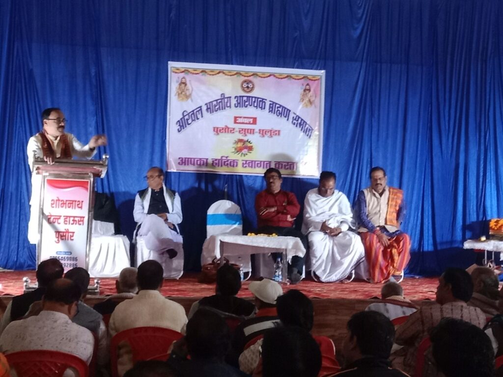वर्श 1924 से स्थापित संगठन अखिल भारतीय आरण्यक ब्राम्हण समाज इन दिनों अपने समाज के साथ साथ अपने से जुडे लोगों के विकास, राश्ट्रीय मुद्दो जैसे आरक्षण, ई डब्लु एस की मान्यता सहित कई बिन्दुओं के चर्चा कर उसे धरातल में लागु करने की बेडा उठाया है इसके लिये लगातार बैठकें भी आहुत हो रहे हैं जिसमें आरण्यक ब्राम्हण समाज के कुल परिवार के मुखिया, युवा एवं महिला जन षामिल हो रहे हैं और उसमें कई समितियां भी बनाई गई हैं। संगठन के रीड में प्रदेष के भाजपा उपाध्यक्ष जगन्नाथ पाणिग्राही इसके अध्यक्ष हैं और महासचिव प्रदीप पाणिग्राही हैं वहीं छत्तीसगढ उडीसा, मध्यप्रदेष सहित अन्य कई राज्यों के लिये उपाध्यक्ष नियुक्त हैं जिसमें सत्यनारायण पंडा, कैलाष पंडा, सुर्य कुमार पंडा, गगन बिहारी पाणिग्राही, मित्रभानु जोषी, कान्हुचरण पुरोहित षामिल हैं, सचिवों में सुदामा नायक सुरेष षर्मा, संयास चरण पाणिग्राही, राजीव लोचन पाढी, षरद पुरोहित, षेशदेव पंडा हैं। कोशाध्यक्ष अषोक पंडा, सह कोशाध्यक्ष दिलीप पाढी, प्रवक्ता कीर्तन सुपकार तथा मिडिया प्रभारी गणपति पाढी जी है। उक्त पदाधिकारियों द्वारा कई ग्रामों को मिलाकर अंचल बनाया गया है जिसके अंचलाधिकारी एवं सह अंचलाधिकारी है। अब तक बरमकेला, सरिया, भिखमपुरा सहित कई अंचलों में बैठके हो चुका है इसी क्रम में बिते रविवार को पुसौर के बाजार स्थित मंगलभवन में सुपा धुलुंडा एवं पुसौर अंचल के अंचलाधिकारी षषिभुशण पाणिग्राही, त्रिलोचन षर्मा, अषोक पुजारी कृश्ण कुमार पुरोहित, प्रमोद कुमार षर्मा, भुपेष पंडा, उत्तम पंडा ष्याम षंकर पाणिग्राही आदि लोगों के सौजन्य से बैठक हुआ जिसमें उपरोक्त सभी पदाधिकारियों के साथ साथ समाज के प्रायः सभी सदस्य मौजुद रहे। लगभग 10 बजे से प्रारंभ हुये बैठक में सर्वप्रथम भगवान जगन्नाथ महाप्रभु का पुजा अर्चना कर पदाधिकारियों का स्वागत समारोह हुआ इसी कडी में समाज के पंजीयन, आर्थिक स्थिति सहित ब्राम्हण समाज के युवाओं को नौकरी पेषे अथवा कहीं षिक्षा ग्रहण करने के लिये षासन द्वारा जो आरक्षण लाया गया है और उसमें मेधावी ब्राम्हण युवाओं को प्रवेष नहीं मिल पा रहा है और वे टेलेंट का यथोचित उपयोग नहीं कर पा रहे है ऐसे स्थिति में ये आजीविका चलाने के लिये छोटा बडा काम कर रहे हैं जिसमें उन्हें काफी परेषानी का सामना करना पड रहा है। समुचे लोगों ने बार निवासी वरिश्ठ व आदरणीय विरंची नायक जी के निधन के लिये षोक जताया। समुचे कार्यक्रम का मंच संचालन राजीव लोचन पाढी द्वारा किया गया जिससे कार्यक्रम कडी से कडी जुडी रही और उबाउ नही रहा, वहीं भजन प्रस्तुति प्रदीप पुरोहित द्वारा की कई और आभार प्रदर्षन विनय कुमार षर्मा द्वारा किया गया। ज्ञात हो कि बैठक 2 चरणों में हुआ जिसमें 