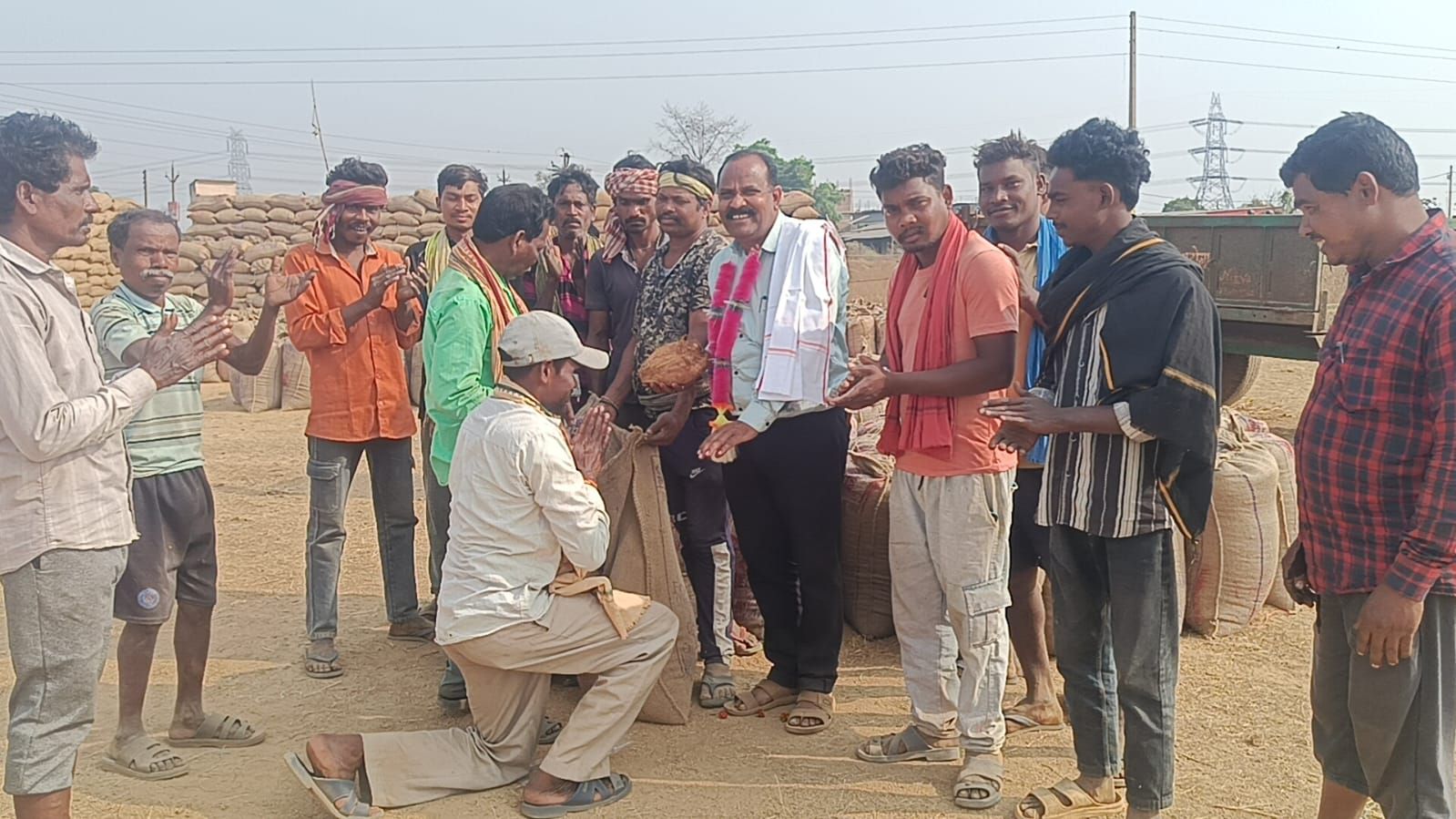 धान खरीदी केंद्रों में शासन द्वारा एक नई परंपरा, खरीदी के प्रारंभ और अंत में धान बेचने वाले किसान का हुआ सम्मान, 40 एकड़ के भू स्वामी एवं सरपंच हरिहर नायक उपार्जन केंद्र में हुआ भव्य स्वागत, शासन के इस नई परंपरा को किसानों ने किया सराहना।