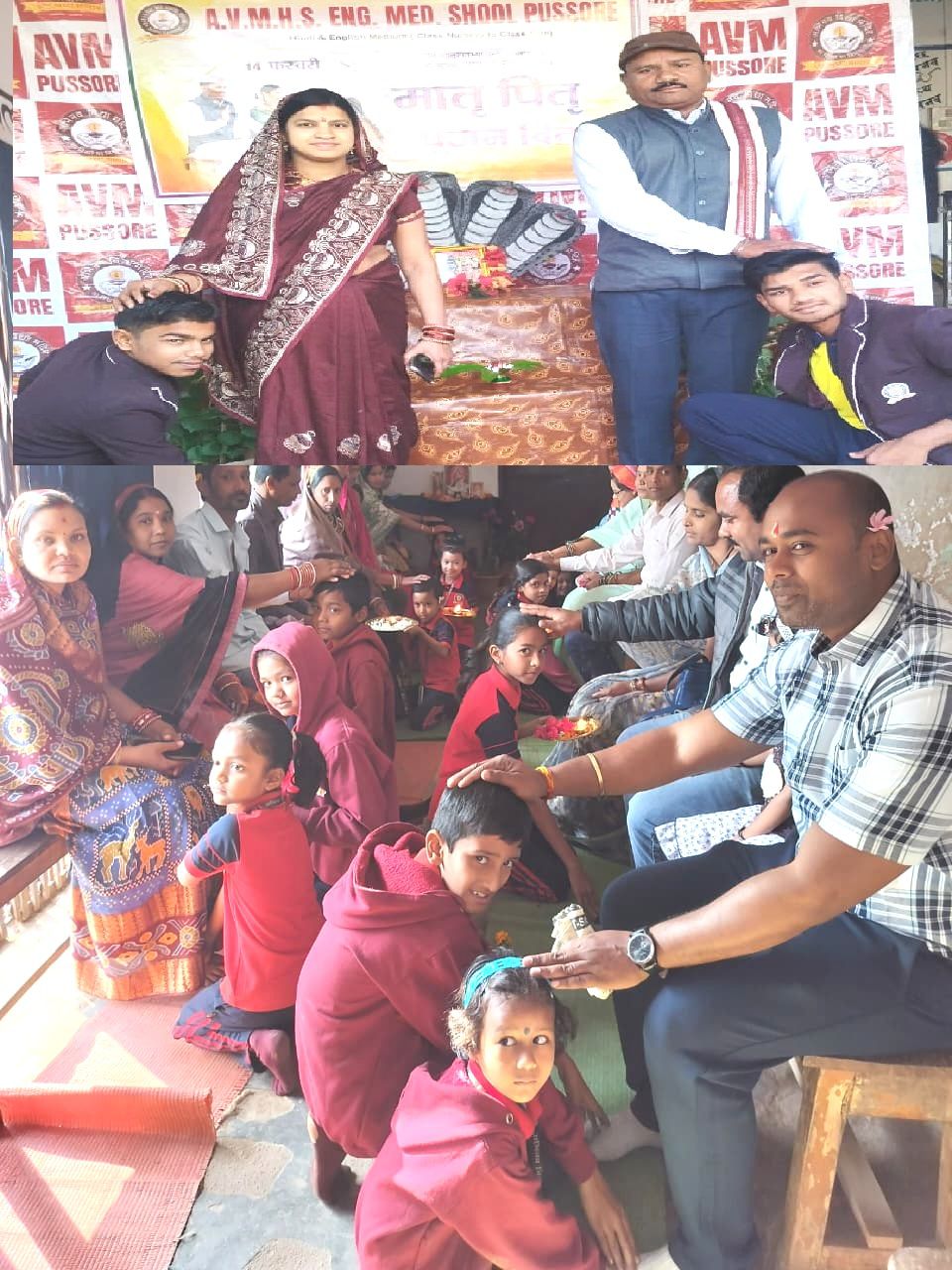 पुसौर के अभिनव विद्या मंदिर में मातृ पितृ दिवस का आयोजन हर्षोल्लास के साथ किया गया। इस अवसर पर विद्यालय के हिंदी एवं अंग्रेजी माध्यम के छात्रों ने अपने माता.पिता के साथ मिलकर इस कार्यक्रम में भाग लिया। कार्यक्रम की शुरुआत मां सरस्वती के पूजन अर्चन के साथ हुई। इसके बाद मंत्रोच्चार के साथ बच्चों ने अपने माता.पिता का तिलक एवं आरती उतार कर पूजा की और आशीर्वाद लिया।