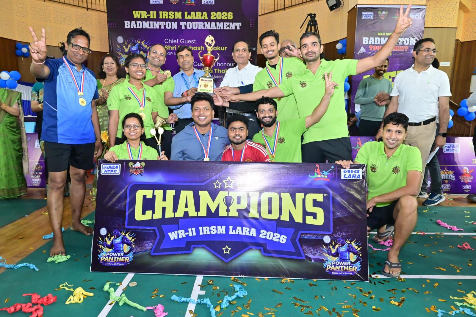 एनटीपीसी लारा में दिनांक 17 से 19 तक आयोजित अंतर क्षेत्रीय बैडमिंटन टूर्नामेंट 2026 पश्चिमी क्षेत्र II के सभी स्टेशनों के शानदार प्रदर्शन के साथ सम्पन्न हुआ। टीम इवेंट में पश्चिमी क्षेत्र-II मुख्यालय (नवा रायपुर) चैंपियन बना, जबकि लारा स्टेशन उप-विजेता रहा। खरगोन और सीपत ने संयुक्त रूप से द्वितीय रनर-अप का स्थान प्राप्त किया।