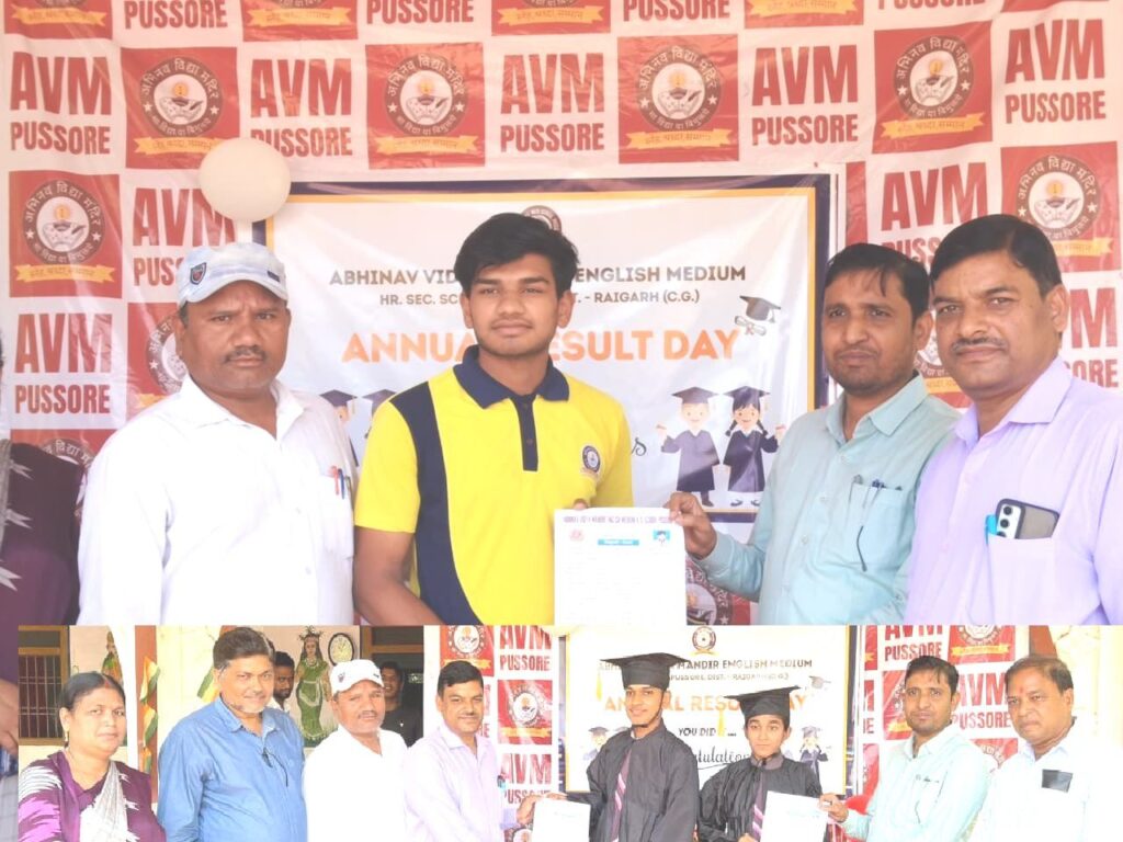 तहसील मुख्यालय पुसौर में स्थापित अभिनव विद्यामंदिर के इंगलिष एवं हिन्दी मिडियम के छात्रों का षैक्षणिक स्तर दिनों दिन बढता जा रहा है जिसके फलस्वरूप् उक्त स्कुल का नाम प्रदेष स्तर में चिन्हित है। यहां के संचालक अक्षय कुमार सतपथी एवं उनके संचालक मंडल छात्रों के सर्वागीण विकास यथा खेल, षिक्षा, स्काउट सहित अन्य गतिविधियों में उम्दा प्रदर्षन कर सकें इसके लिये प्रयासरत रहते हैं जिसके फलस्वरूप आये दिन यहां के छात्र अपना नाम के साथ साथ संस्था का नाम भी रोषन कर रहे हैं। इसी तरह यहां के इंगलिष मिडियम के छात्रों के परीक्षा परिणाम को देखते हुये खंड षिक्षा अधिकारी षैलेष देवांगन स्वयं स्कुल पहुंच कर छात्रों को सम्मानित किया जिसमें मुख्यतः इन्हौने कक्षा ग्यारहवी के मैथ्स विशय में 91 प्रतिषत अंक प्राप्त किये छात्र नमन साव सहित अन्य छात्र षामिल थे। जानकारी के मुताविक यहां के इंगलिष मिडियम के क्लास नर्सरीः फस्र्ट समर्थ साव, द्वितीय नुबिका जेना, एलकेजीः 1. जिज्ञासा कुर्रे 2. भुमिका प्रधान, युकेजीः 1 प्राची गुप्ता, 2 आरोही गुप्ता, क्लास फस्र्टः 1. लविना चैहान 2 आयांस भोय, क्लास सेकेडः 1 प्रियल पटेल 2 निकेता गुप्ता, क्लास थर्डः अंष सिंह राजपुत 2 आरूश गुप्ता, क्लास फोर्थः प्रियांसु मेश्राम 2 यमन गुप्ता, क्लास सिक्सः प्रियांसु गुप्ता 2 कृश्णा गुप्ता, क्लास सेवनः1 लिसा सारथी 2 सुरज साव, क्लास9 1. सुधाषु गुप्ता 2 सौम्या गुप्ता, तथा क्लास इलेवनः 1. नमन साव 2. सत्यरेखा भास्कर ने सर्वाधिक अंक प्राप्त किया है। इस उपलब्धियों को लेकर छात्र एवं उसके परिवार जनों ने स्कुल के षिक्षक मंजुलता गुप्ता, प्रिति गुप्ता, कामिनी षर्मा, पदमलया देहरी, रितु भोय, सरोज प्रधान हेमसागर भोई, प्रांजल पंडा, अभिशेक गुप्ता, इंद्रजित बारीक, केदारनाथ देहरी किसन पटेल, तमन्ना सर्राफ, हेमलता निशाद, रितु भोय, अभिनव सतपथी सहित समुचे षाला परिवार को श्रेय दिया है। नगर उपाध्यक्ष उमेष साव ने इस उपलब्धि के लिये षाला परिवार की सराहना करते हुये छात्रों के उज्जवल भविश्य की कामना करते हुये बधाई दिया है।